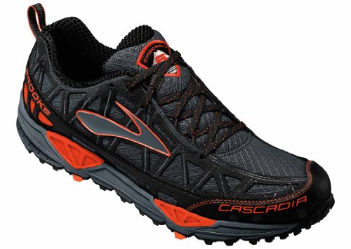 Brooks Brooks Men's Cascadia 8 Trail Running Shoes. ... Color: Iron/Blck/ShckngOrng/RedOrng. ... They tend to run a bit small so a half-size larger might do the trick.